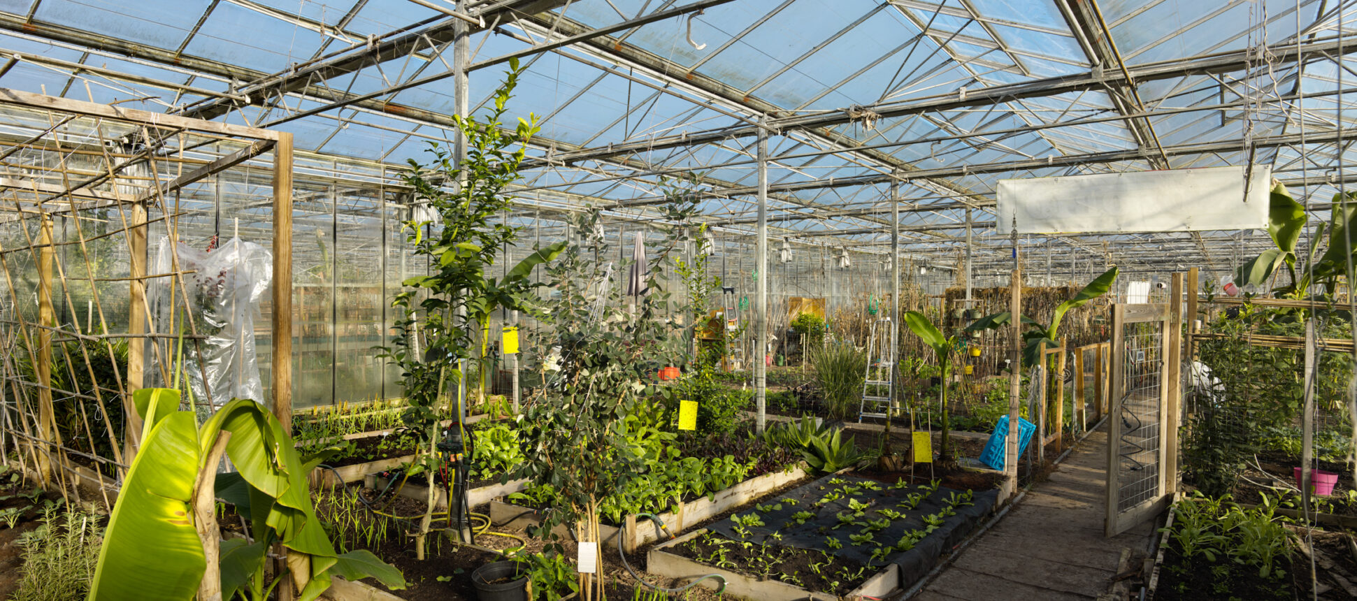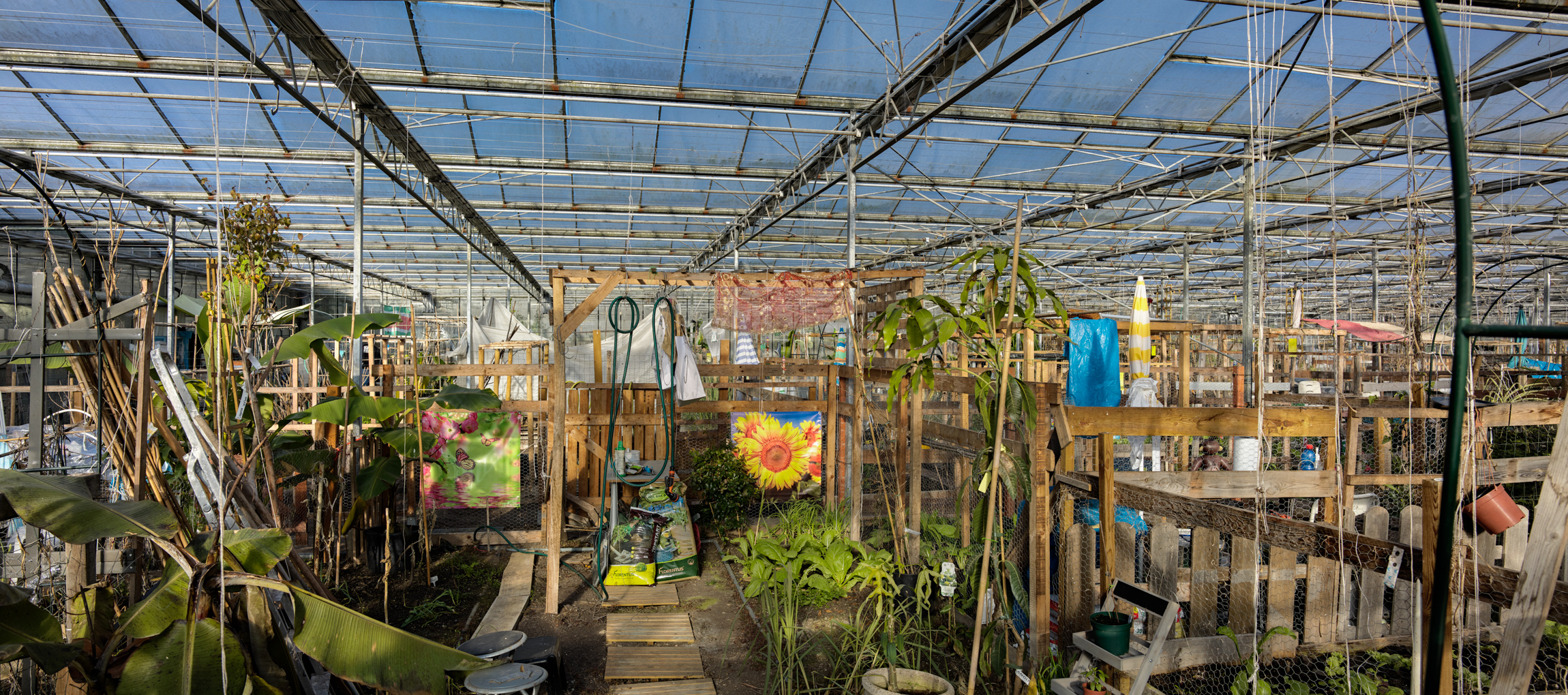 Under the glass roofs where used to grow roses there are now some 600 vegetable plots where mainly Surinamese families grow mainly Surinamese vegetables, from yardlong beans, pak choi and bitter melon to bananas and mangos.