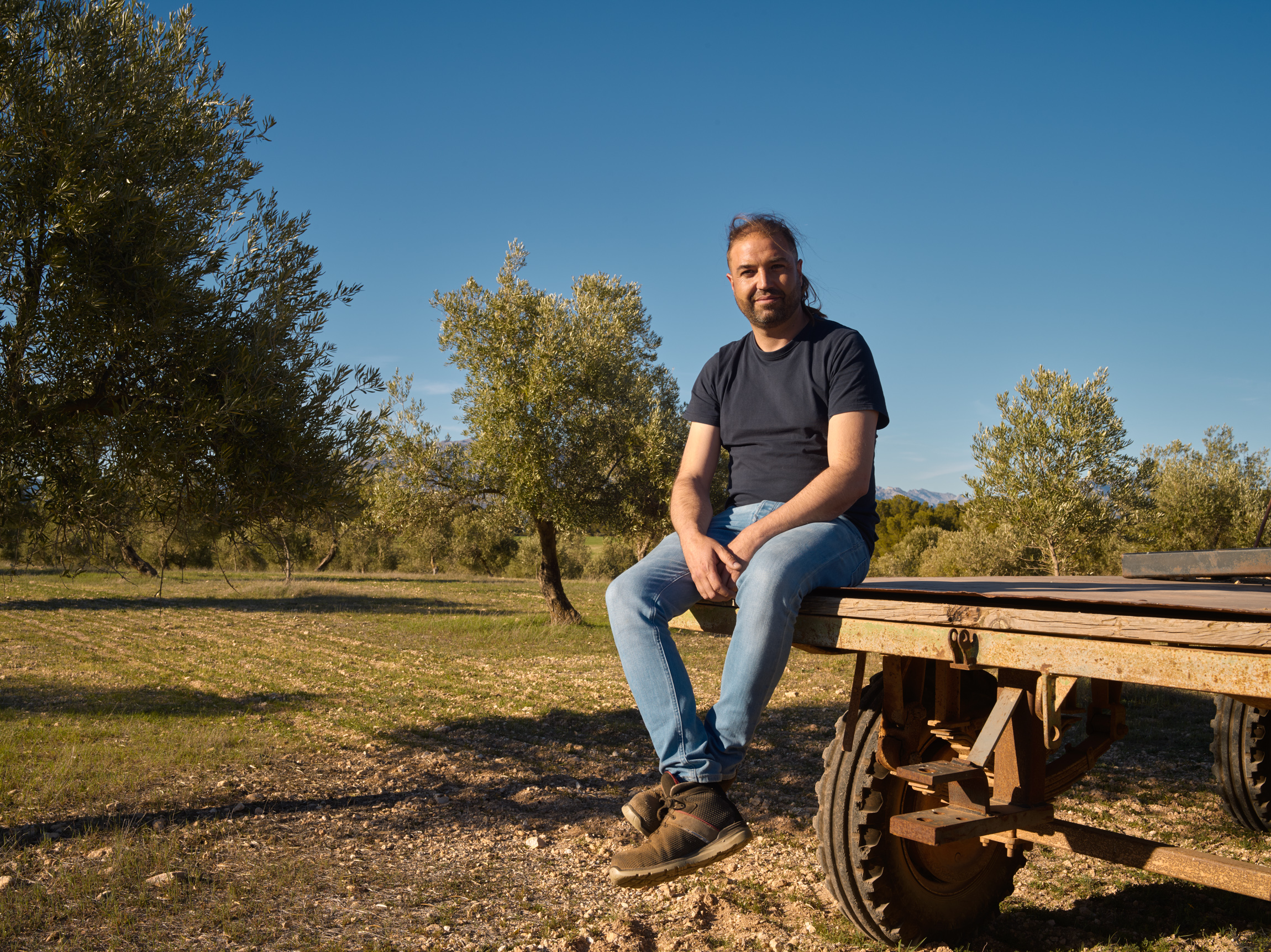 We meet Maikel in the café in his native village in Campocámara, a tiny village in the municipality of Cortes de Baza. Maikel comes from a farming family, and as a child he already knew he wanted to be a farmer like his father. We saw how that happened in the afternoon after lunch, on his 35 hectares of land. As soon as he got out of the car he was transformed into the little boy he had described, who went out into the fields with his father. He called his sheep and walked over to them, whistling and talking to them. Here Maikel feels at home. This is his habitat, his living room. Maikel runs his father’s family farm. He has extended the existing crops and introduced sheep to the business. For Maikel the sheep are key to the regenerative agricultural practices of mulching with excess wool, eating and managing the available green manure, saving on feed supplements, and fertilizing the soil with organic additives that are supplied by the animals. Maikel runs the 35-hectare farm alone and also makes a fantastic award-winning olive oil called ‘ORO Del DESIERTO’.