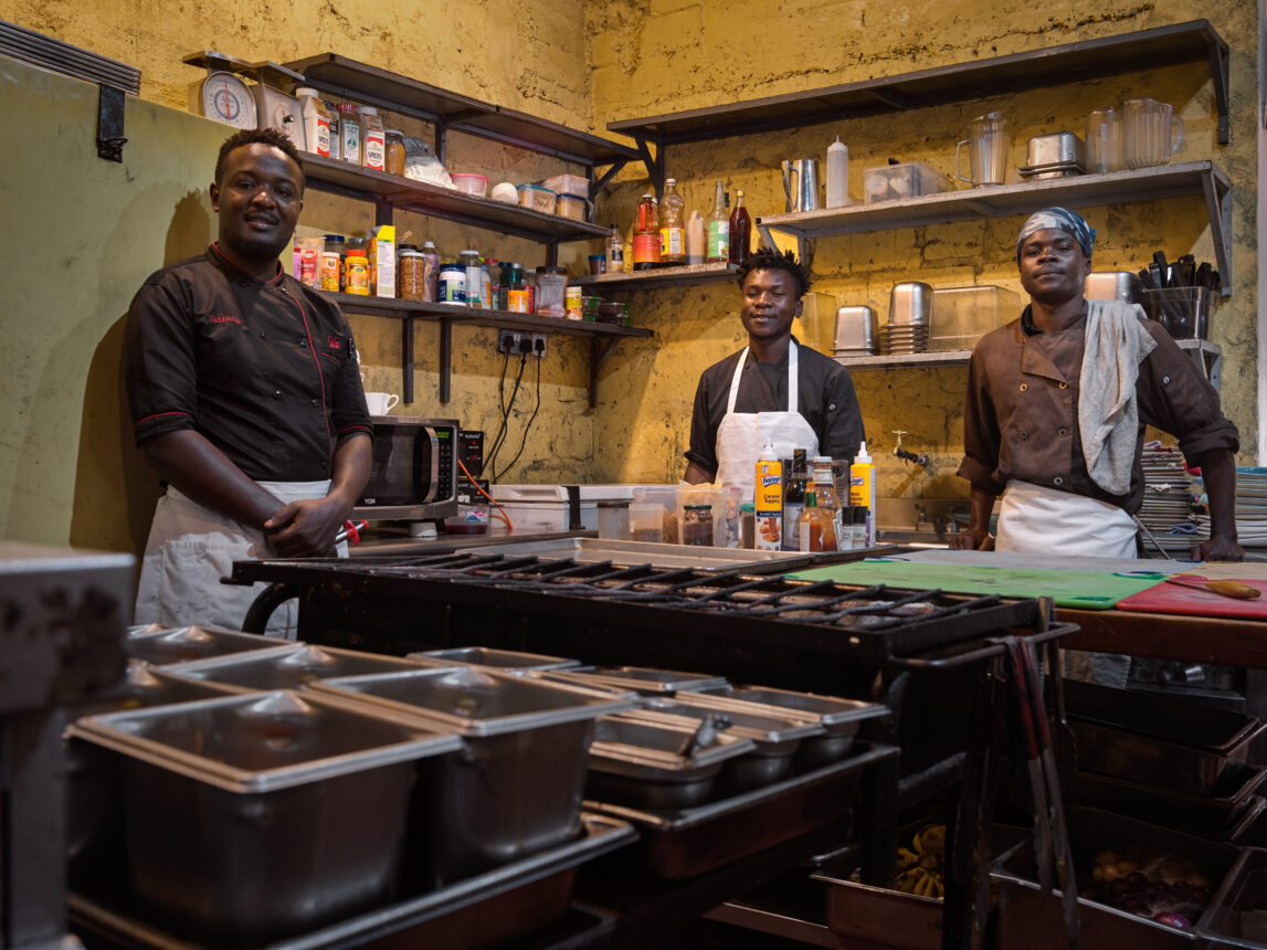 ‘We need a little bit of direction on how food should be prepared in Africa. I’m not saying I know it all, but I took it upon myself to say: I’ll come here, to Kenya, and set up a little restaurant for myself, and the most important part is to be able to train young kids or young people who are interested in cooking, because I realize that food is actually the medicine of life. One of the things that amazes me is that my wife has given me a challenge. My wife told me that Kenyan men don’t cook, which I know anyway because, you know, African guys, they don’t want us in the kitchen. So one of the things I took from my wife is this: I will find guys in Kenya who love to cook. That’s where Murithi came in, that’s where Joshua came in, that’s where Michael came in. These guys had no knowledge about food at all, but I took it upon myself to train them.’