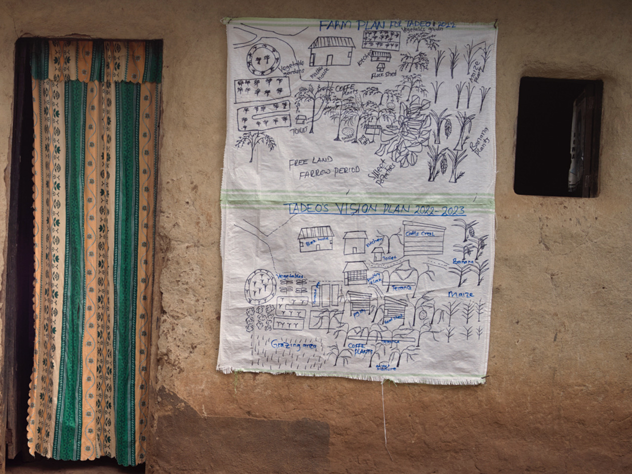 Mugisa is a proud man, and he told us how he’d developed the plan for his farm with the help of KAWODA. Diversification is key to the agroecological transition, which aims to guarantee food security and nutrition and at the same time preserve, protect and improve natural resources. He explained the importance of a balanced diet, telling us what the family eats and how many meals they have each day.
