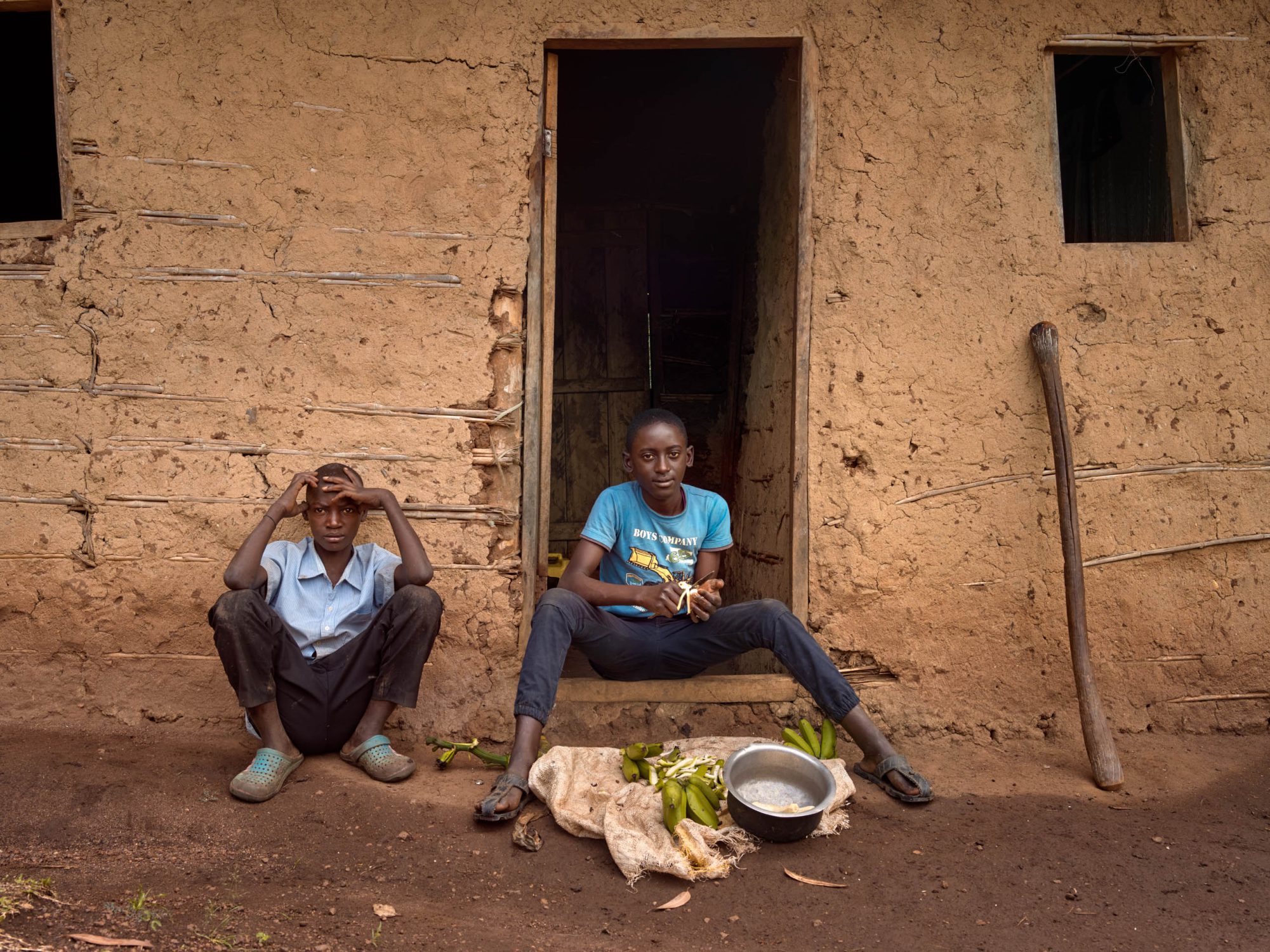 Then Mugisa and Angelica begin their long day working on the land.